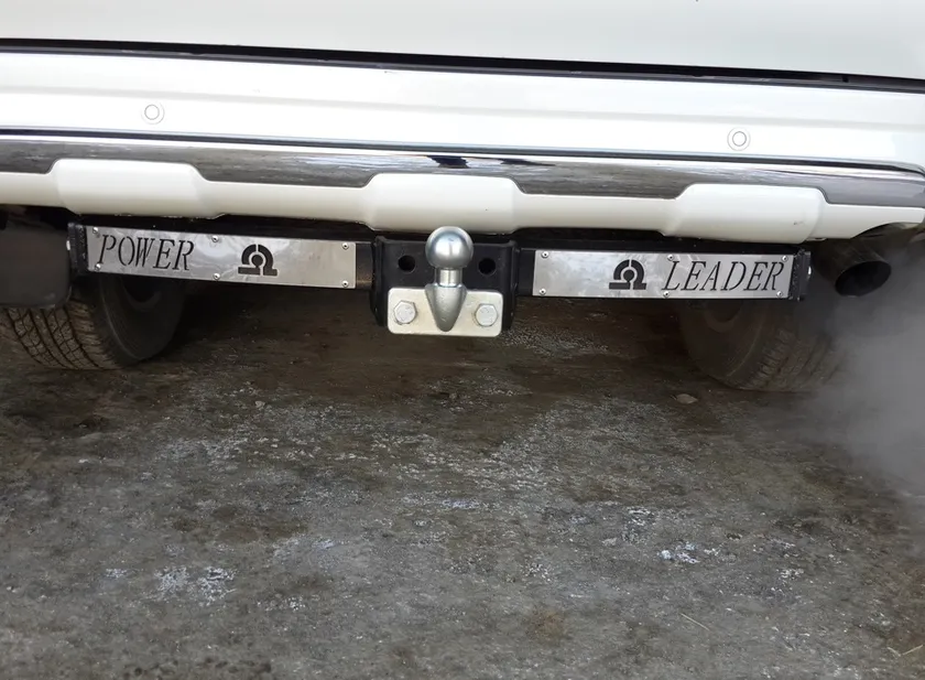 На балке ТСУ закреплены нержавеющие накладки, что придает изделию особый вид.